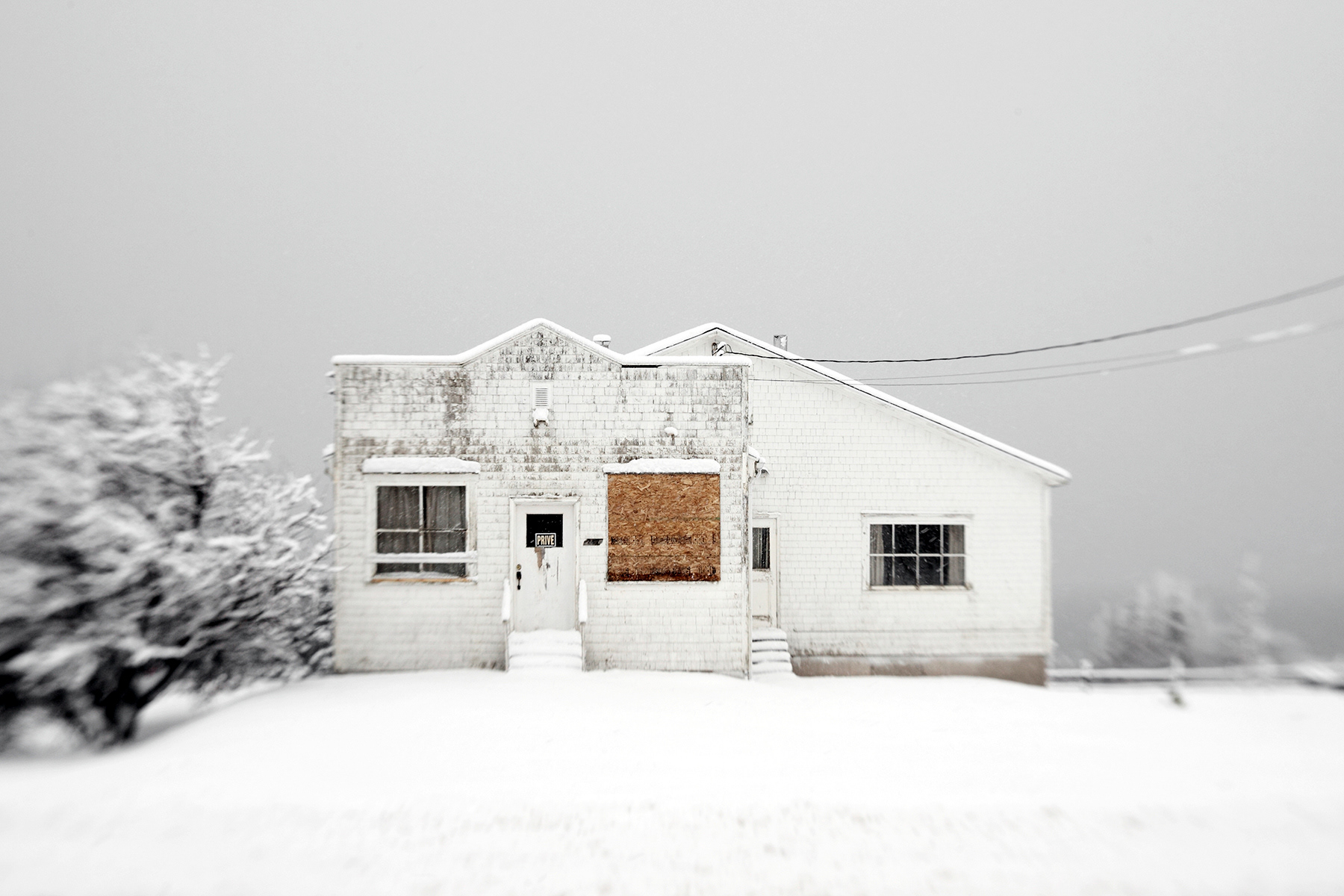 Publié aux Éditions Cayenne en 2016, dont la maturité est désormais bien ancrée dans le milieu de l'édition photographique, "Gaspésie human less" regroupe des dizaines de photographies étalées sur près de 300 pages qui nous montrent et qui nous désignent du même souffle visuel, à la manière d'une respiration propre à la photographie, un vaste pan du territoire québécois abandonné; de Ste-Flavie à Ste-Flavie, sur 800 kilomètres de route, une suite de maisons laissées à l'abandon. Une seule aurait suffi si on avait choisi la rhétorique de la métonymie mais non, il faut frapper plusieurs fois sur le clou pour assurer l'efficacité du geste. Et quels gestes !