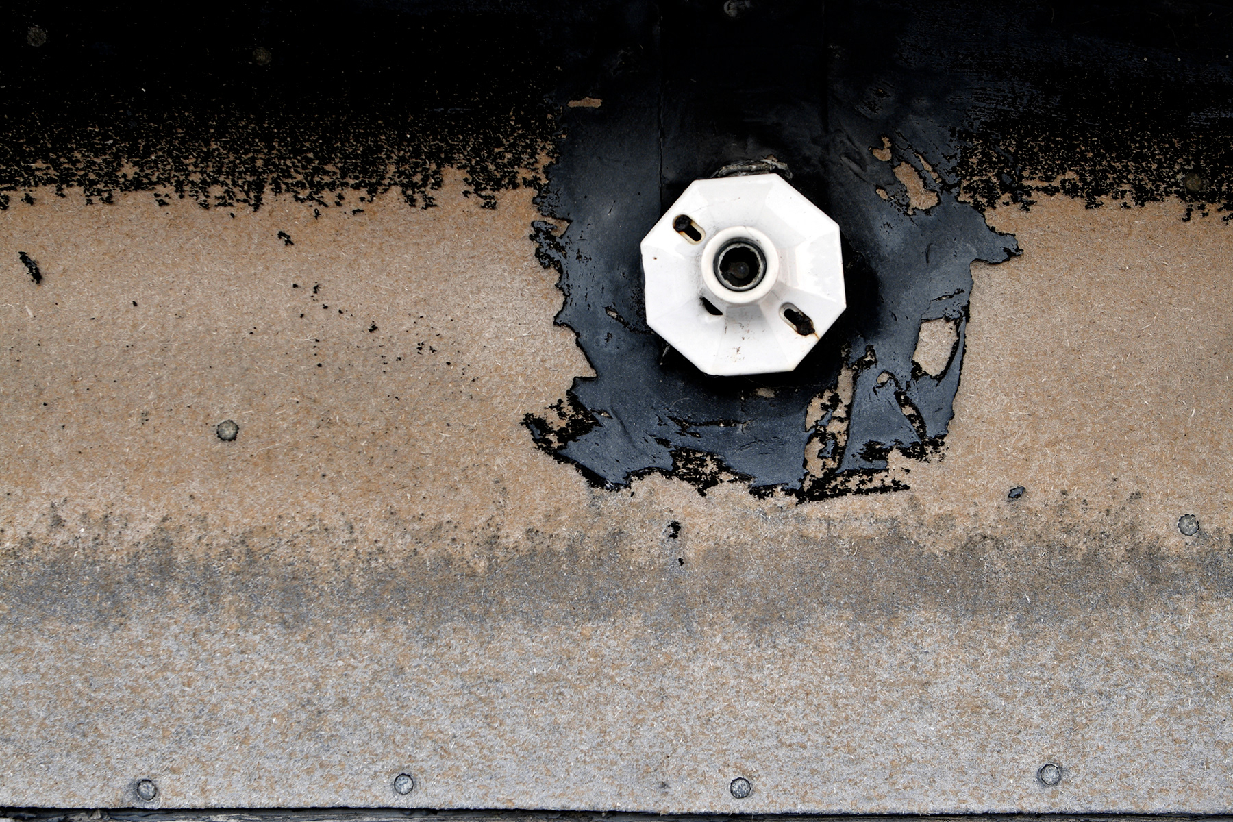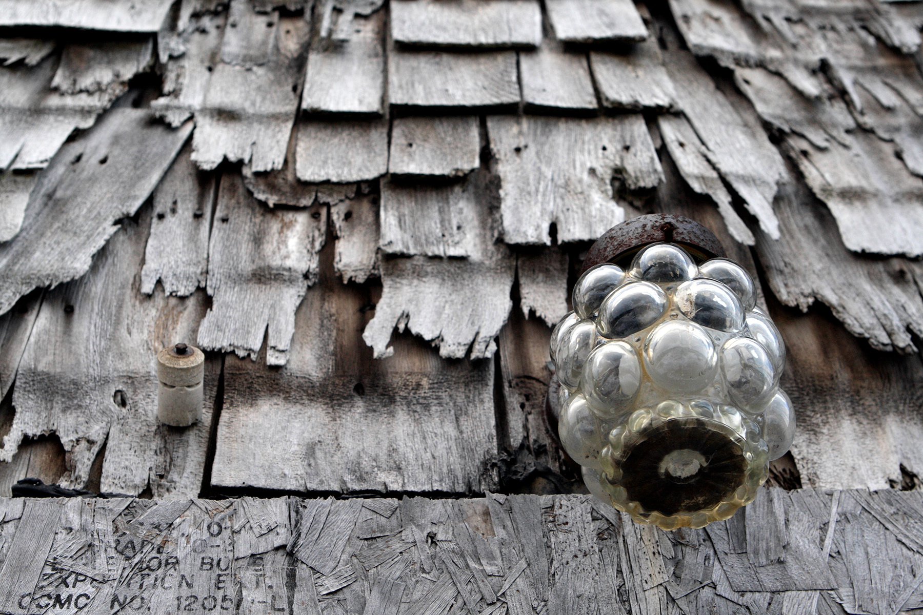 L'abandon est bien sûr signifié par l'allure des bâtisses photographiées, mais aussi par le choix de certains détails, dont ces compteurs électriques désormais coupés de tout lien avec l'extérieur ou encore ces ciels minutieusement détourés et d'où la transcendance est désormais absente.